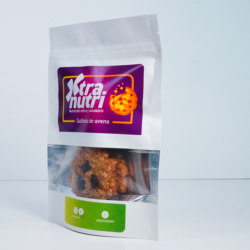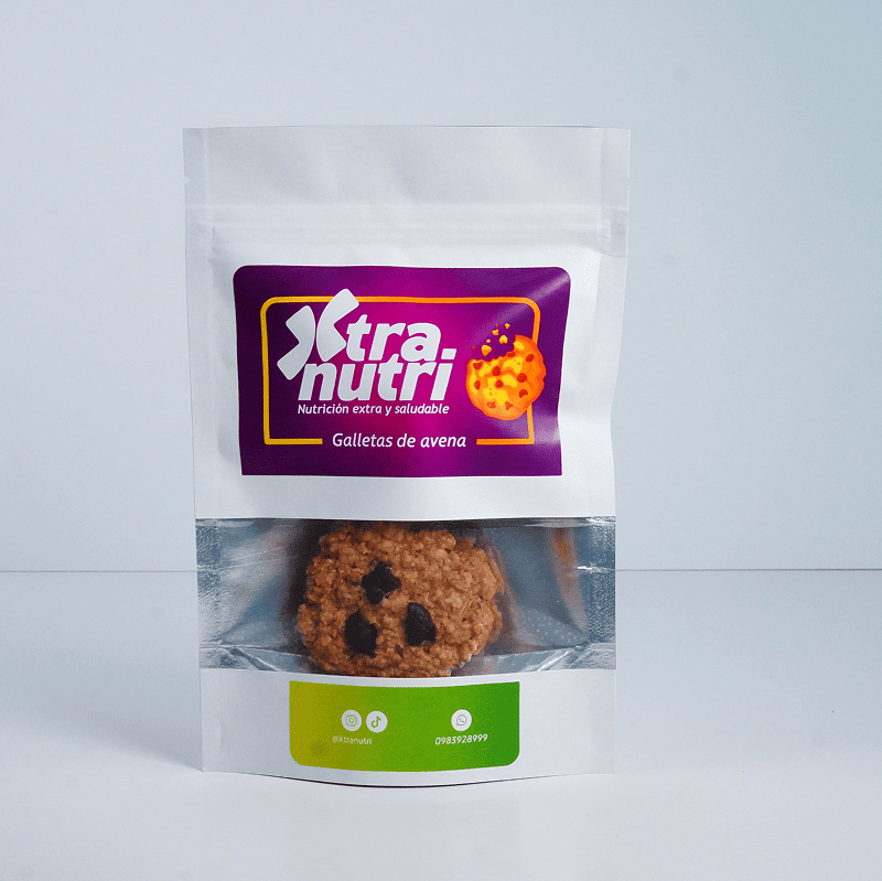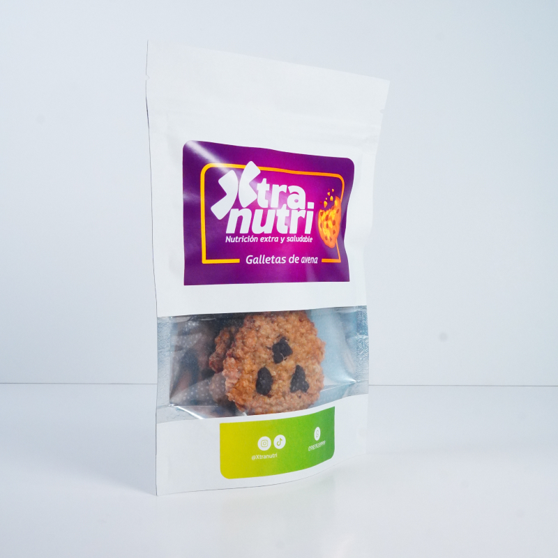 Son unas galletas elaboradas de forma artesanal con avena, con chocolate oscuro al 75% que es libre de lactosa y las gotas de chocolate con edulacorante