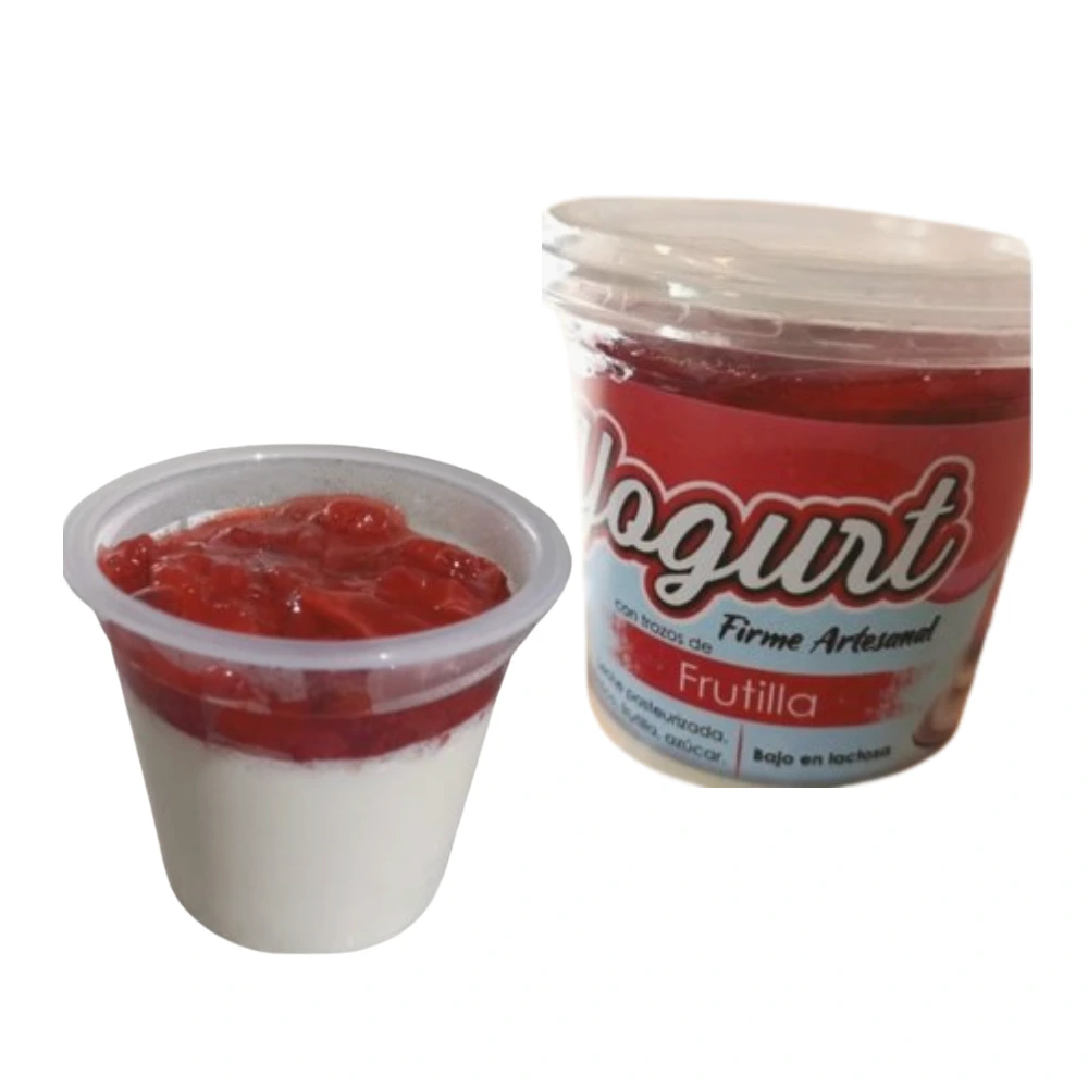 Yogurt firme (tipo griego) producido localmente, sabor intenso y textura densa. Su presentación incluye frutilla en almibar en la parte superior, sin mezclar. Está disponible bajo pedido, en ferias, y a través de su cartera de clientes, además de ser vendido en la UDLA y a través de Pedidos YA.
